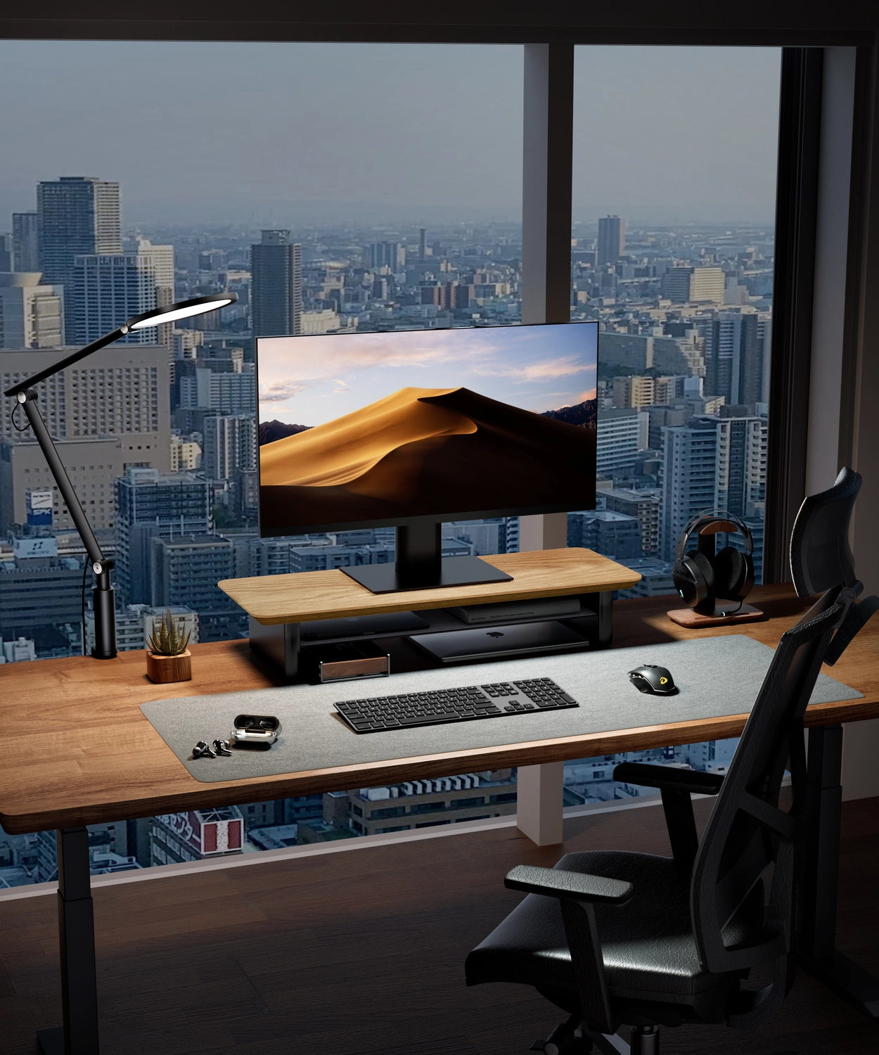 Créez votre espace de travail idéal avec le rehausseur d'écran Alberenz® en chêne. Assurez-vous d'un espace qui soit non seulement esthétique mais aussi confortable.