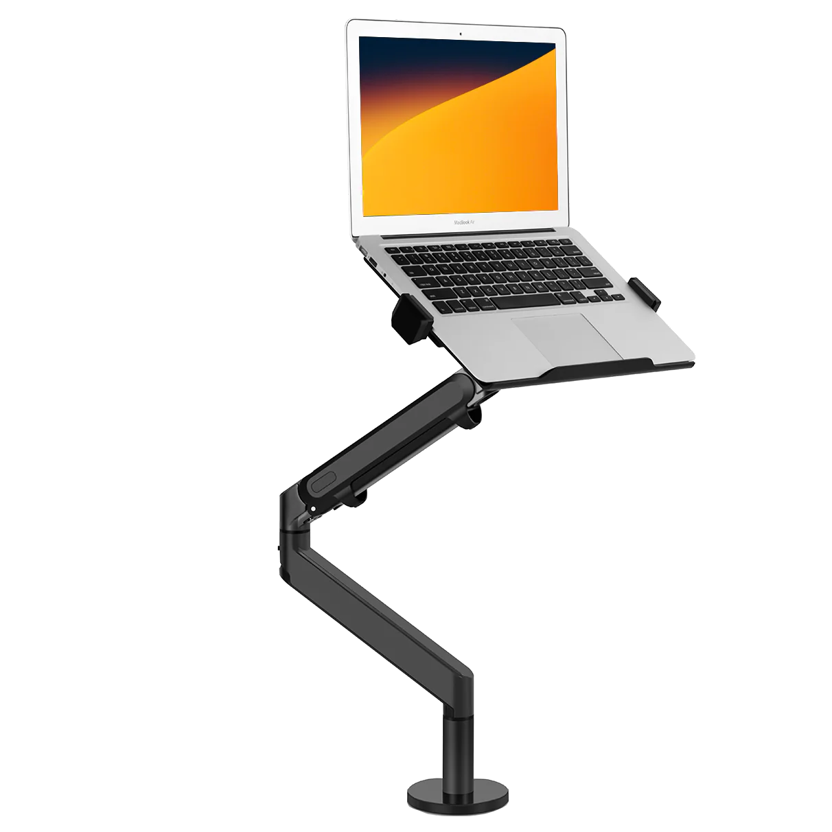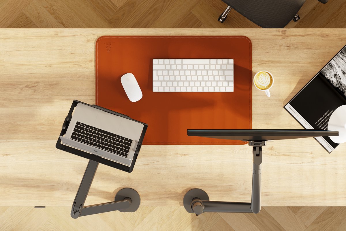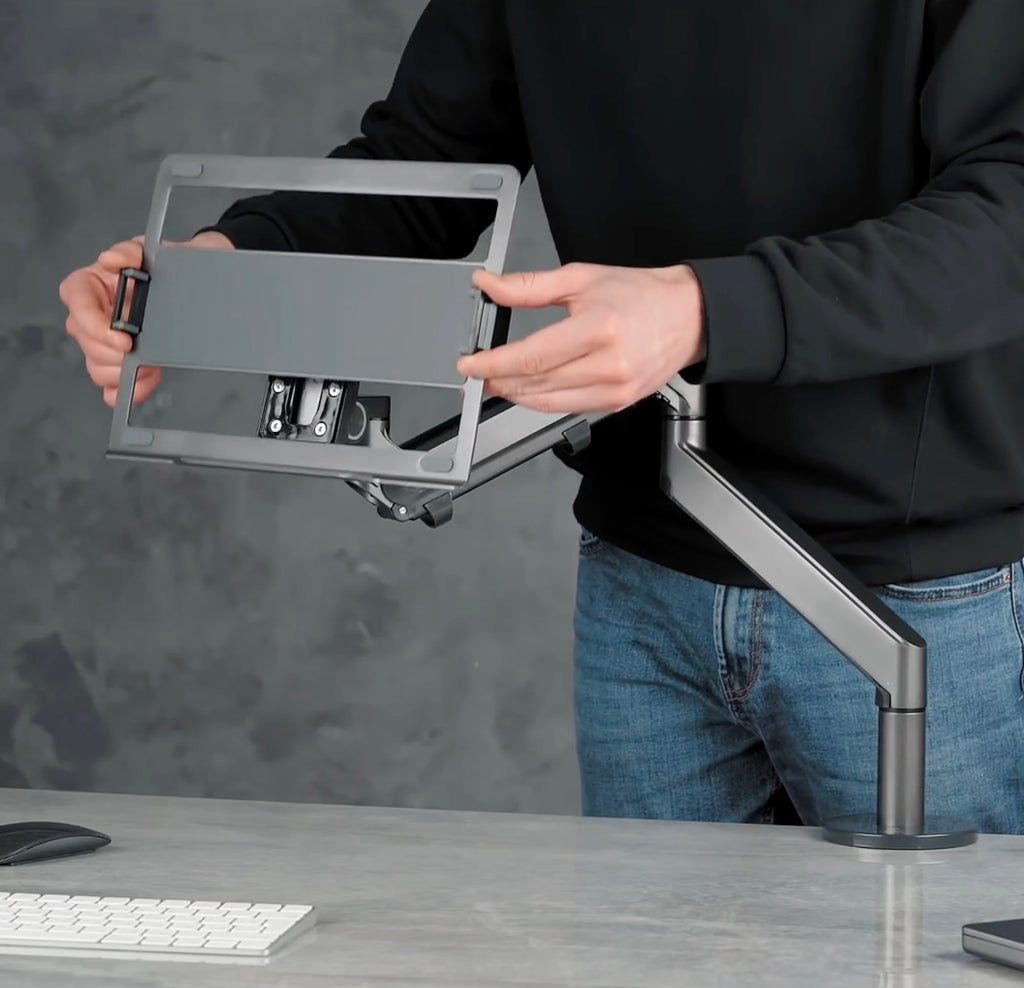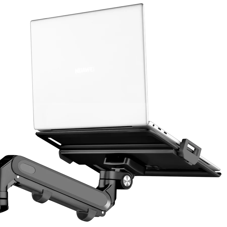 The laptop arm lifts your monitors off the desk, freeing up space for other items.